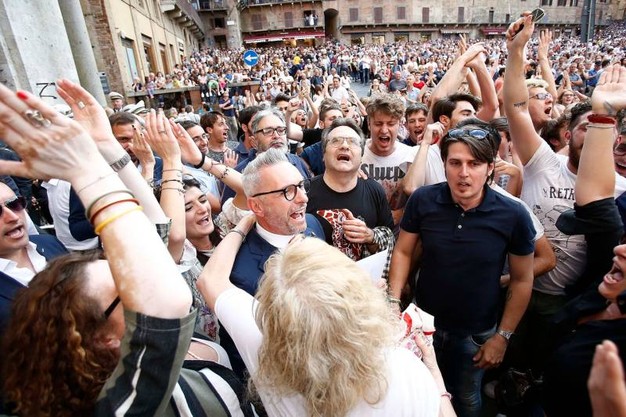 Second place was the Eagle who with the horse Renalzos and the jockey Carlo Sanna, called Brigante, came close to succeeding but the decisive curve of San Martino failed to overcome the opponent. It was also the burden of bad weather and fear (though defeated) of terrorism and the first to have limited access numbers. Blinded Piazza del Campo and denied entry under the age of twelve who reluctantly looked at the “career” in their contingent with the maxi screens. Closed in advance, to