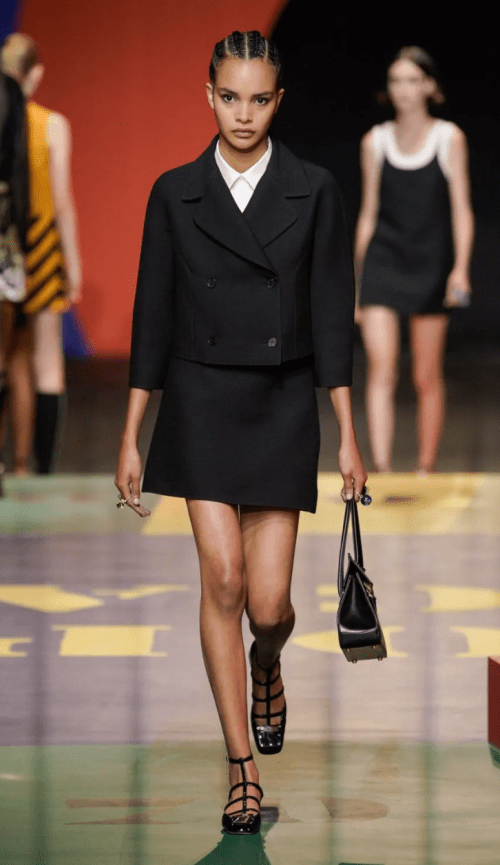 Maria Grazia Chiuri is connected to that first part of the Sixties, who in this post-pandemic moment draws up a reference lexicon that starts from graphic effects, up to materialize in a color block with a Bohanian aesthetic taste.