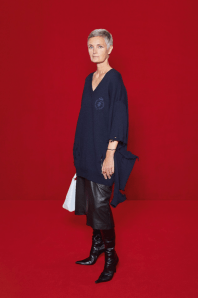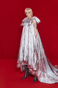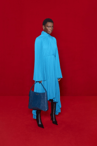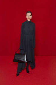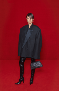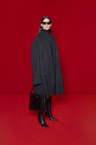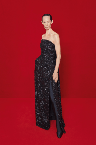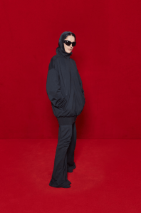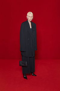 Powerful red for that red carpet imagined by Demna Gvasalia for the new Balenciaga story . Between total black that dominates with some exceptions to denim and saturated colors, working on oversized shapes for outerwear and draped and pleated dresses. With an exceptional cast that mixes age, new face and super celebrities such as Amber Valletta , Isabel Huppert and Juergen Teller who, after the photographers, go to sit in the audience of the theater. The lights go out and the surprise begins. The Simpsons meet Balenciaga, with a real parade in Paris. And Anna Wintour’s cartoon sheds a tear of emotion when she sees Marge Simpson walking the runway.