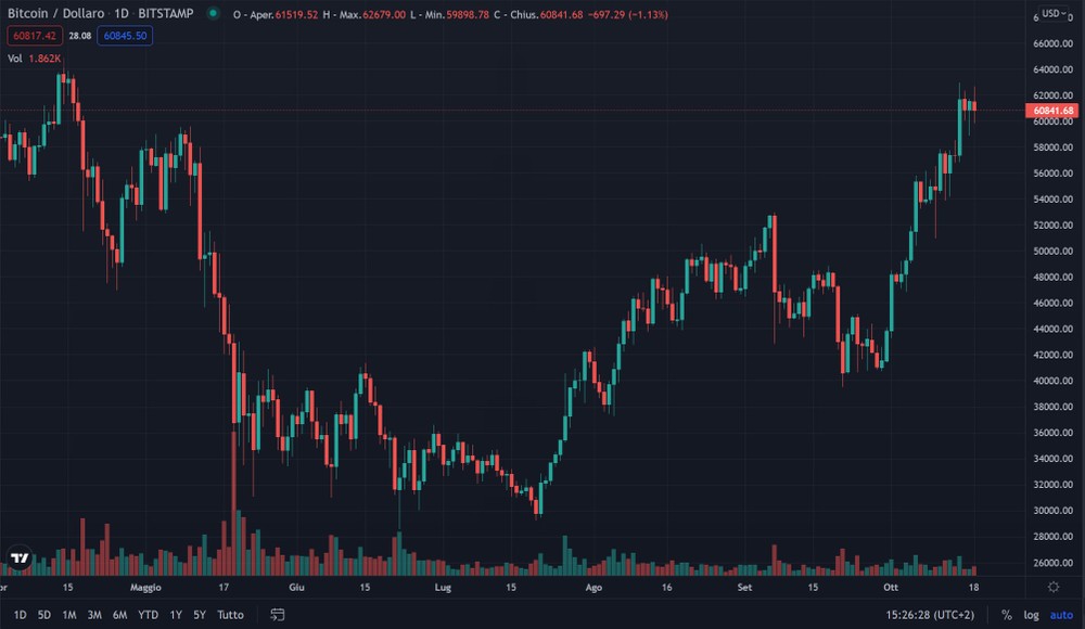 Over the course of Friday, Bitcoin returned above $ 60,000 , which had been missing since mid-April, and over the weekend it touched $ 63,000, close to around 64,800 that still represent the record today. At the time of writing, BTC has slightly retraced but remains above that critical value, signaling a positive trend that for many is to be found in the approval of the first Bitcoin futures ETF in the United States , rumored for a few days and then actually happened. today.