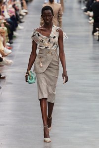 Jones amalgamates the atmospheres of Spring-summer 1986, characterized by geometric prints and tailored styling, with hints of the Fall-winter 2000 collection, in the name of a diaphanous lightness. On the catwalk, therefore, strength and softness alternate and overlap, thinking of a woman whose power is enhanced by clothes whose quality, value of materials and attention to detail are captured at first glance.