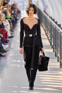 Said top featured the sleeve that defines the McCartney collection: a stunning appliqué sewn around the shoulder in the manner of a flounced curtain, which was also featured on what the press release wittily coined “chintz dresses”. They set the tone for a collection that, not unlike Stella’s sculptures, was filled with unpredictable silhouettes, such as skirts apparently suspended from bikinis, jumpsuits woven with metal threads exploding in fringes, or cargo jumpsuits with puffed sleeves that might have be an artist’s uniform.