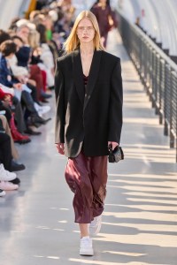 In the trendiest department, the reference silhouette of the season has also infiltrated this runway: the oversized jacket paired with an underwear element and a fitted leg, with the runner-up of the season just behind in the form of a leotard, which – in this case – underlined the sculptural premise of the collaboration. McCartney accessorized his collection with innovative technology that transforms grape skins into faux leather, “so all the wine you drank was made into a bag,” he said.