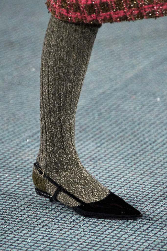 Aside from River Tweed, Viard had things to say about city wear as well. “I was also thinking about 1960s England and very colorful record covers,” he said. Short tweed dresses drew on that energy as did a pair of leather petticoats. The shiny black kitten-heeled skimmers the models wore could give the cap-toe slingbacks so loved by the fashion crowd a run for their money.