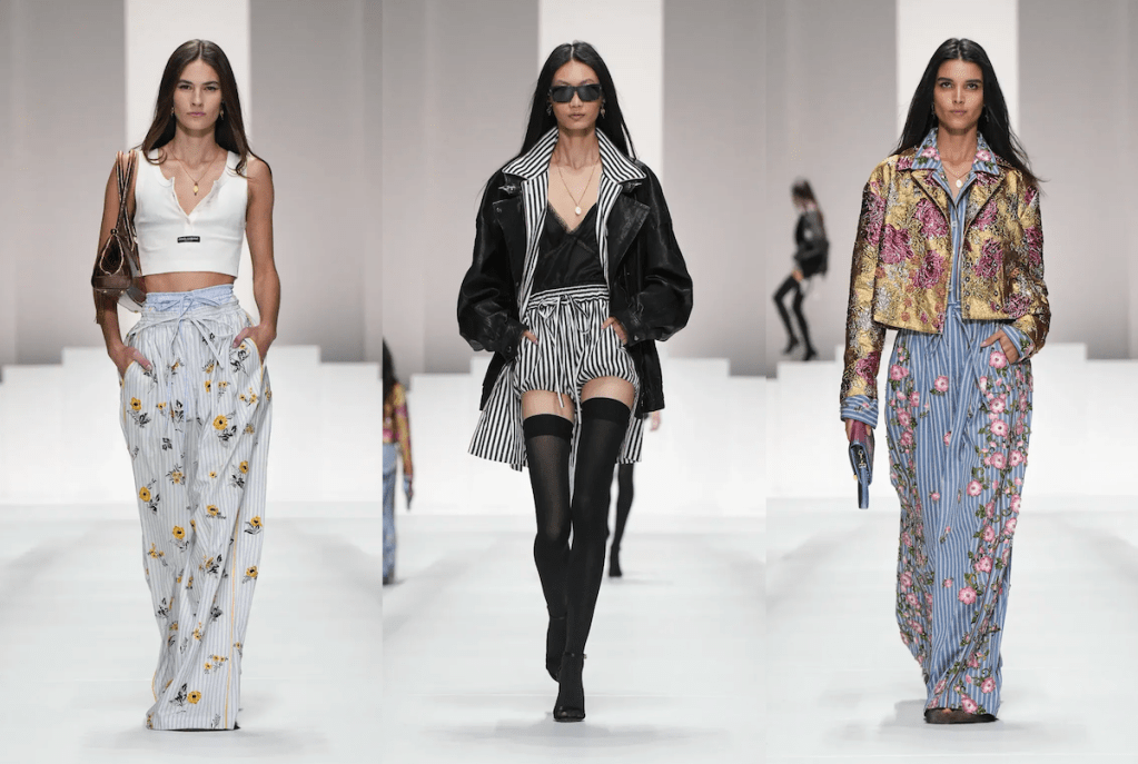 Dolce & Gabbana’s Spring/Summer 2026 runway show opens with a clear idea: transforming underwear into a statement, the loungewear into a symbol of desire. Pajamas, the undisputed star of the collection, are presented in shiny silk, vertical stripes, elaborate embroidery, and endless variations ranging from refined to playful. It’s the piece of the moment, yet reinterpreted with the visionary power that has always been part of the brand. Each look seems to affirm that fashion is no longer just clothing, but a projection of moods, a story that moves between intimacy and the public stage.