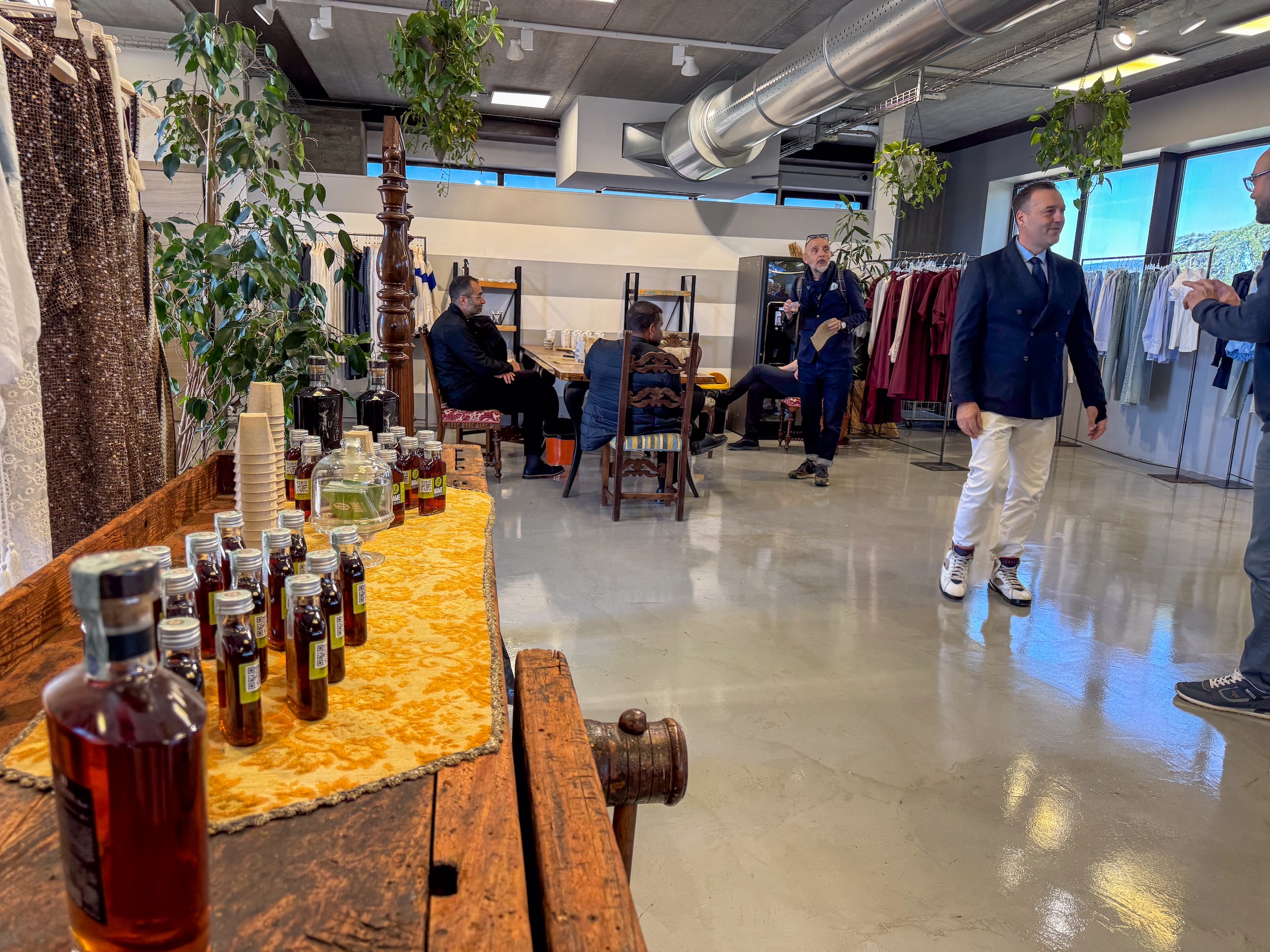 During the event, I had a chance to interview Lorenzo. I explored the space more closely. I saw many concrete, contemporary offerings. Well-calibrated in image, fit, and desirability. Men’s. Women’s. Accessories. Different brands—but all aligned within a coherent commercial direction.